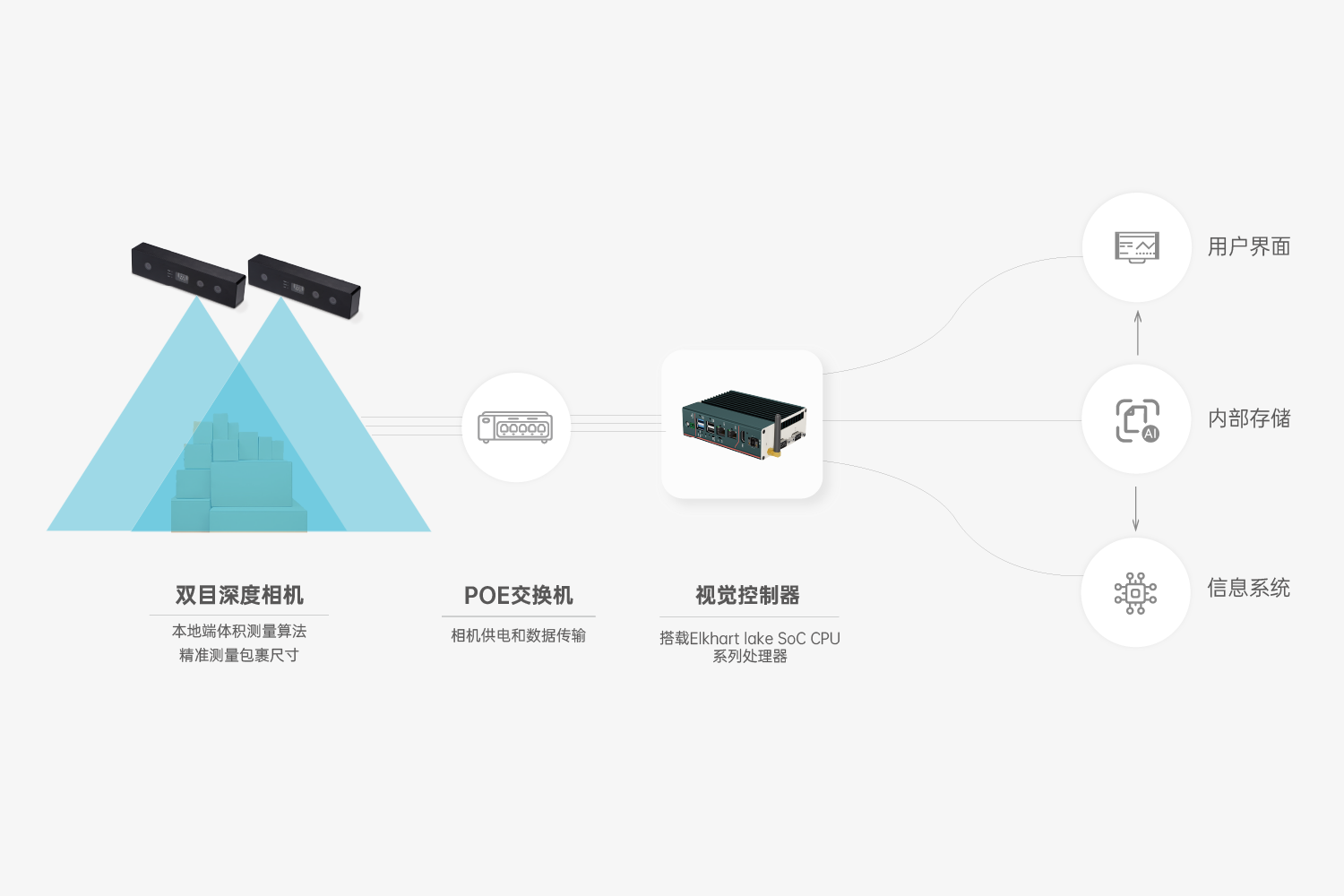 首页 动态 开云电子kaiyun智能推出全新体积测量解决方案,赋能物流企业数字化降本增效 开云电子kaiyun智能推出全新体积测量解决方案,赋能物流企业数字化降本增效 企业动态 2024-01-25 浏览量:2208 随着物流行业对精细化管理运营要求不断提升,包裹体积数据对企业提升测量效率和运输效率、优化存储空间及物流配送路线等方面均有重要意义。 物流行业传统采用人工测量方式,测量准确度受限于测量员的技术和经验,不确定性高,效率低,人力成本高,还存在隐形的员工管理成本,以及由于测量误差导致的仓储空间利用率低等问题。 如何进行精细化、自动化、智能化的体积数据采集,从而实现降本增效? 除纸箱等常见货物,对非规则、软包、高反光件、薄件等特殊形态包裹的精准测量,对多数体积测量制造企业提出更高的技术要求。 开云电子kaiyun智能静态体积测量方案,基于6年技术沉淀,自主研发出HumanoidVisionTM技术,能够精准测量各种类型包裹体积,满足小件、大件、超大货物场景的体积测量需求,用智能赋能物流行业数字化升级。 多相机组合方案 开云电子kaiyun智能采用主动双目立体成像技术,结合彩色摄像头输出高帧率RGB-D图像,通过自研的高精度体积测量算法,可以精准输出体积数据,满足仓储物流、商超、航空货站等场景下体积测量任务。 方案优势 01 测量精度高,传输稳定高效 稳定输出毫米级精准深度图,扫描帧率达8FPS; 司眸体积测量相机搭载了高精度算法和出色的硬件配置,适用全类型,多尺寸包裹测量场景; 千兆网络传输接口,抗干扰强,传输远,高频率传输数据时不掉线,不丢帧,数据传输稳定; RGBD实例分割算法,精准输出包裹的体积数据,平均测量精度可达5mm。 02 抗环境光干扰,适应性更强 支持光线变化场景下输出精准数据; 支持多曝光融合; 针对高反、强光、暗光场景优化体积测量深度数据; 03 安装范围广,调试易上手 单设备方案最大可支持1.8m高度安装;多设备方案最大可支持3.5m高度安装; 安装角度不严格限制为垂直(可偏差±5°); 接口简单,SDK集成简单,可供多平台SDK,方便二次开发。 应用场景 01 全类型包裹 适用于纸箱、异形件、软包、黑色包裹、高反光件(金属件、型材)、薄件(最低支持1mm薄件)等不同类型包裹的体积测量,一台设备兼具全类型包裹的体积信息采集,为业主提供更全能的解决方案。 02 多尺寸测量 #小件体积测量方案 开云电子kaiyun体积测量单相机方案最小可测量50mm x 50mm x 1mm立方体,规则物体精度±5mm;不规则物体测量精度:±10mm,适用于小件包裹体积测量场景。 #单设备大件体积测量方案 开云电子kaiyun体积测量相机内置高精度深度融合算法,具备大视场角,最大可测量1200mm x 1000mm x 1800mm 立方体,规则物体测量精度:±10mm;不规则物体测量精度:±20mm。针对快运行业的大件包裹,可快速精准完成快件的体积信息实时采集。 #方案可定制 开云电子kaiyun智能还可针对特定货物测量场景定制方案,支持多台3D相机拼接,软件集成拼接算法,最大可测量1800mm x 1800mm x 1800mm 立方体;测量精度:±20mm,针对仓储物流,码垛类型的超大件物体进行体积测量。 上一个:开云电子kaiyun智能助力连锁门店占领“客户心智” 返回列表 下一个:3D机器视觉可以完成许多2D机器视觉无法完成的任务。 更多新闻推荐 端到端 更易用丨开云电子kaiyun®散料运输动态监测与预警系统全新上市 新品上市 2025-02-20 小尺寸 更灵活丨开云电子kaiyun3D相机PEA020-800-Y80S上新,助力多场景智造升级 新品上市 2024-09-29 目前主流3D视觉技术各有什么优劣势?如何选择最Match的工业3D相机? 技术科普 2024-08-12 【最全选型攻略】挑选合适的工业相机,必须提前考虑12要素! 工业相机 2024-07-16 场景应用丨开云电子kaiyun智能智能煤流监测系统全新升级,赋能自动化煤流管控 场景应用 2024-07-08 场景应用丨开云电子kaiyun智能3D视觉+AI深度学习,助超大型货物体积测量更准,更稳,更易用 场景应用 2024-06-04